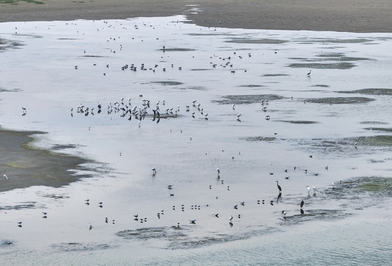 8月25日,群鳥(niǎo)棲息在川水灣。