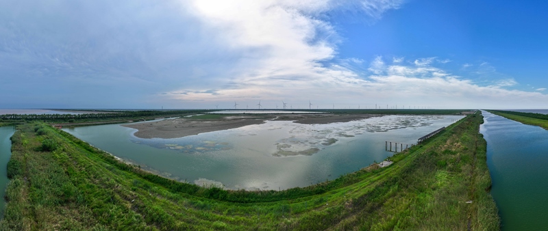 8月25日拍攝的東臺(tái)條子泥濕地“720”高潮位棲息地(無(wú)人機(jī)照片)。