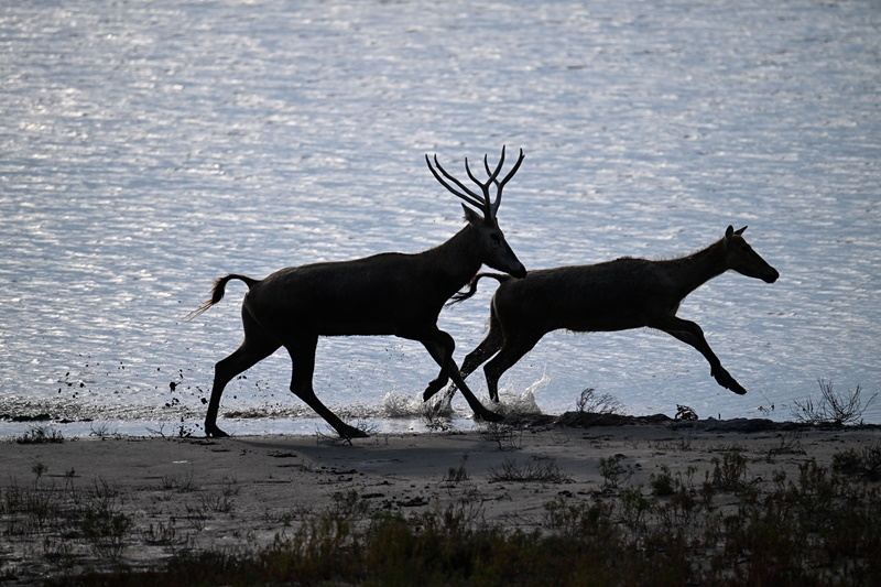 8月25日,野生麋鹿棲息在川水灣。