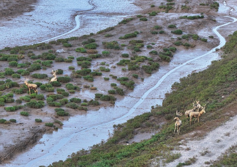 8月25日,野生麋鹿棲息在川水灣(無(wú)人機(jī)照片)。
