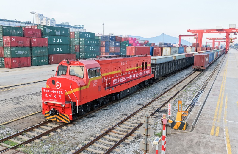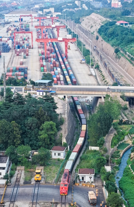 8月29日,在位于江蘇連云港市的中哈(連云港)物流合作基地,滿(mǎn)載50個(gè)集裝箱的光伏專(zhuān)列發(fā)車(chē),這是中哈(連云港)物流合作基地開(kāi)行的首列光伏專(zhuān)列。該趟列車(chē)抵達(dá)喀什北站后,貨物再通過(guò)汽車(chē)運(yùn)抵烏茲別克斯坦,與傳統(tǒng)的全鐵路運(yùn)輸相比,這種鐵公聯(lián)運(yùn)方式可有效縮短運(yùn)輸距離,并發(fā)揮鐵路運(yùn)輸?shù)拈L(zhǎng)距離、大運(yùn)量和公路運(yùn)輸?shù)撵`活性特點(diǎn)。