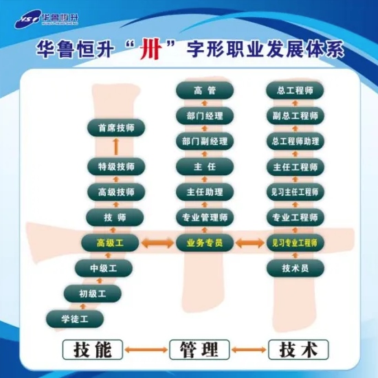 華魯恒升這個“卅”字,正是湖北總工會“卅”字形職業(yè)發(fā)展體系的縮影。“技能-技術(shù)-管理”三條事業(yè)路徑既能縱向發(fā)展又能橫向連接;既可以在任一賽道向上攀登,又能橫向貫通跨領(lǐng)域成長成才。