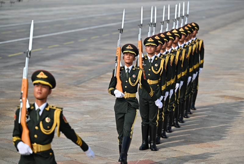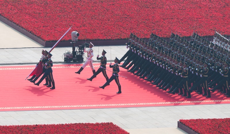 9月3日,紀(jì)念中國(guó)人民抗日戰(zhàn)爭(zhēng)暨世界反法西斯戰(zhàn)爭(zhēng)勝利80周年大會(huì)在北京隆重舉行。這是標(biāo)兵就位。
