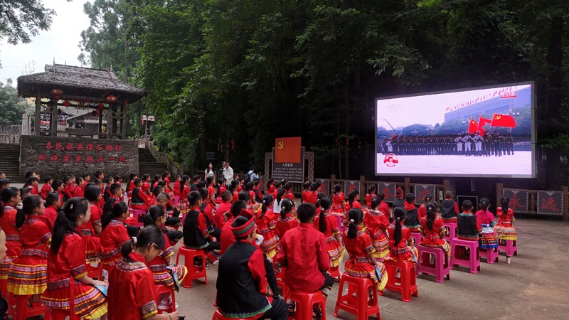 9月3日,云南省騰沖市清水鎮(zhèn)司莫拉佤族村的干部群眾在觀看紀(jì)念中國人民抗日戰(zhàn)爭暨世界反法西斯戰(zhàn)爭勝利80周年大會(huì)直播。