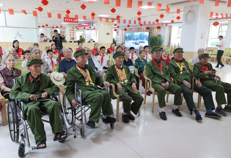 9月3日,在位于山東省臨沂市沂南縣大莊鎮(zhèn)的“山東抗戰(zhàn)老兵照護(hù)中心”,老兵們和志愿者、少先隊(duì)員一起觀看紀(jì)念中國人民抗日戰(zhàn)爭暨世界反法西斯戰(zhàn)爭勝利80周年大會(huì)直播。