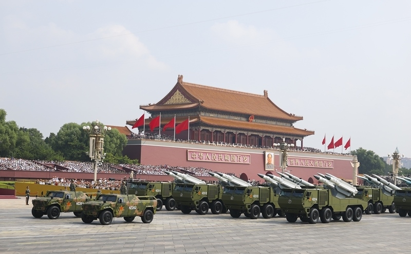 9月3日,紀念中國人民抗日戰(zhàn)爭暨世界反法西斯戰(zhàn)爭勝利80周年大會在北京隆重舉行。這是核導(dǎo)彈第二方隊接受檢閱。