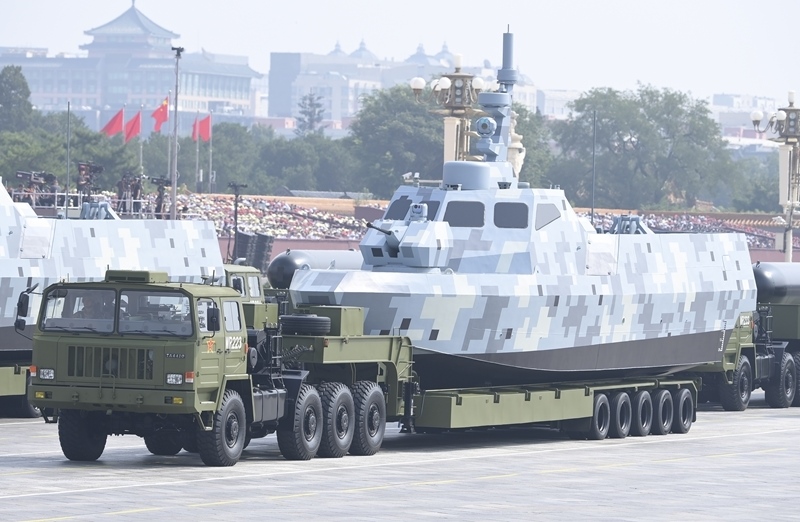 9月3日,紀念中國人民抗日戰(zhàn)爭暨世界反法西斯戰(zhàn)爭勝利80周年大會在北京隆重舉行。這是艦載防空武器方隊接受檢閱。