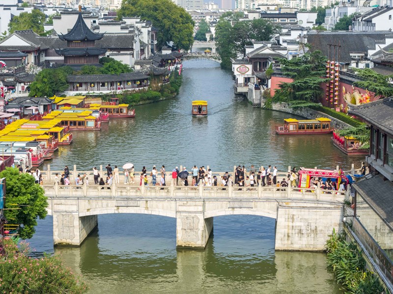 10月5日,人們在南京夫子廟景區(qū)游玩(無人機照片)。