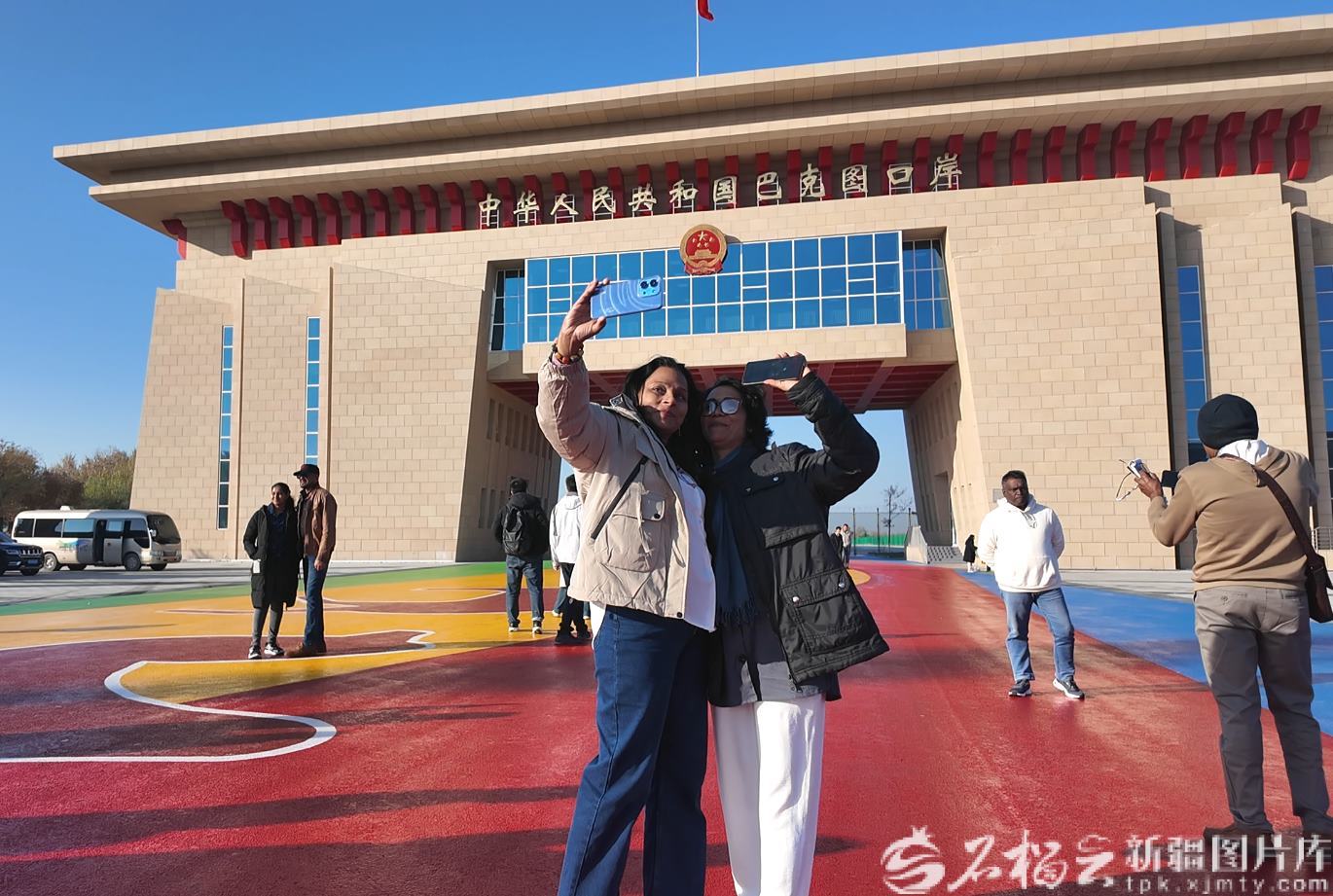 10月20日,斯里蘭卡人民解放陣線代表團(tuán)成員在塔城地區(qū)巴克圖口岸拍照打卡。張成林?jǐn)z