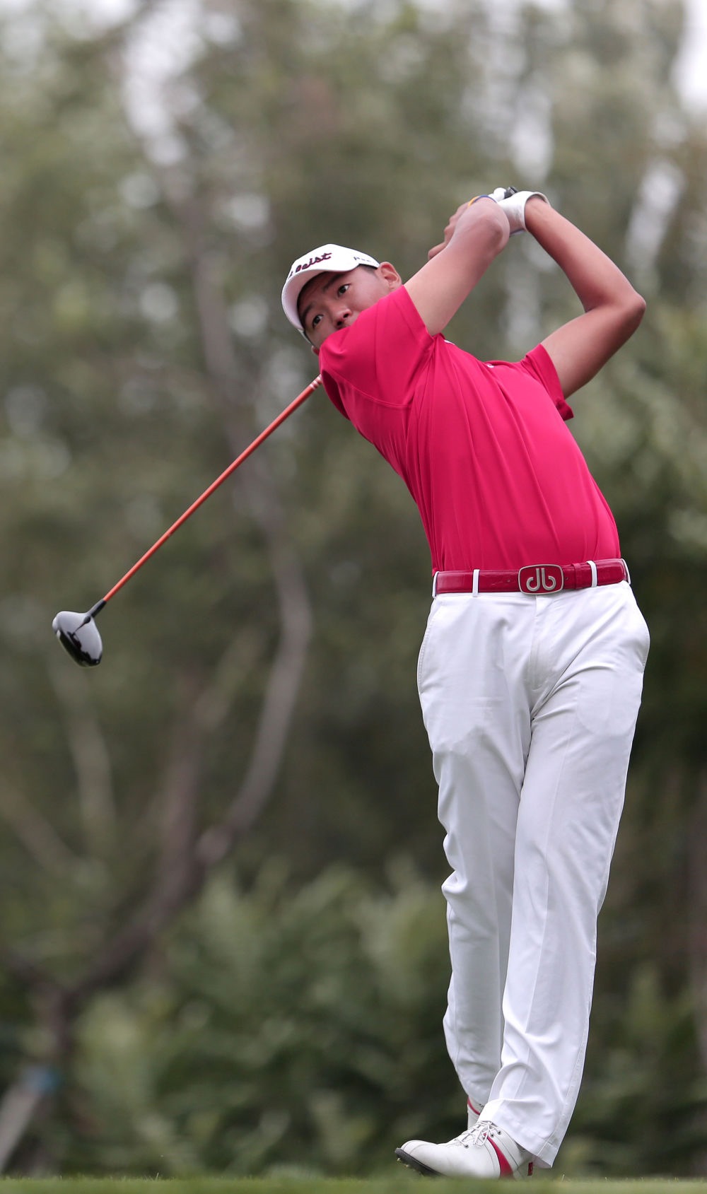 2013年9月9日,香港隊選手黑純一在比賽中。當(dāng)日,在遼寧省沈陽市進(jìn)行的第十二屆全運(yùn)會高爾夫球男子團(tuán)體比賽中,香港隊最終以851桿的總成績奪得亞軍。新華社記者姚劍鋒攝