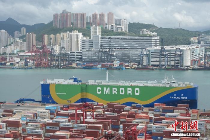 2025年9月28日,全球首艘9300CEU(標(biāo)準(zhǔn)車位)甲醇雙燃料動(dòng)力滾裝船“港榮”輪(“CM HONG KONG”輪)首航香港儀式在香港舉行。圖為“港榮”輪。(資料圖) 中新網(wǎng)記者 陳永諾 攝