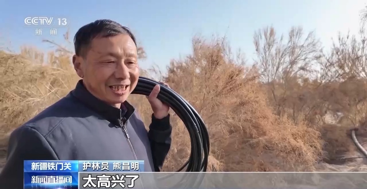 眼下這個季節(jié),正是冬季巡林最忙碌的時候,新疆鐵門關(guān)市營盤鎮(zhèn)53歲的護(hù)林員熊昌明,每天早晨都會和同事在泵房會合,一起去檢修梭梭林里的滴灌帶。