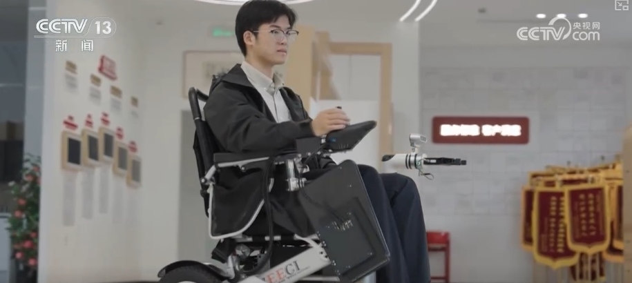 在杭州西湖區(qū),工作人員正在對(duì)眼前這款智能輪椅進(jìn)行技術(shù)升級(jí)。結(jié)合失能老人手腳行動(dòng)不便的痛點(diǎn),這款輪椅搭載了深度相機(jī)和智能機(jī)械臂,通過(guò)內(nèi)置的AI算法,使用者只需和平常一樣坐在上面,簡(jiǎn)單用語(yǔ)言表達(dá)需求,輪椅就可以判斷路線(xiàn),智能移動(dòng)。
