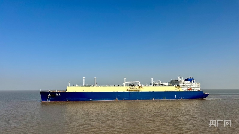 “武當(dāng)”號LNG運(yùn)輸船即將靠岸(央廣網(wǎng)記者 顧煬威 攝)