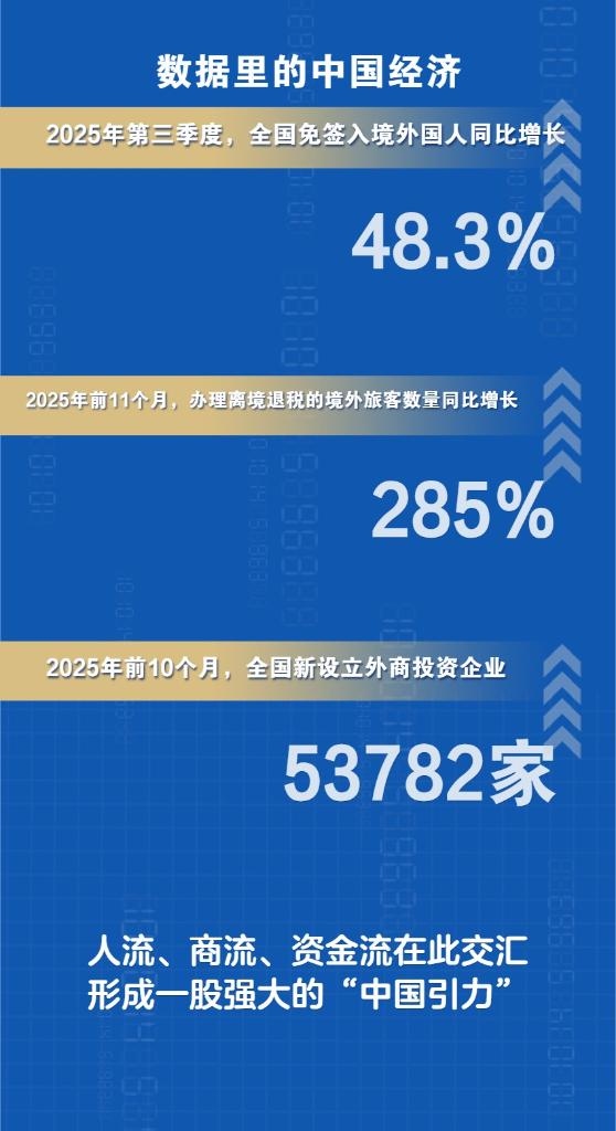 新華社上海12月26日電(記者王默玲、周蕊、桑彤)免簽政策持續(xù)擴(kuò)容,“中國游”熱潮席卷全球;離境退稅便捷高效,“中國購”熱度持續(xù)攀升;外資企業(yè)加速布局,“投資中國”信心堅定。2025年,人流、商流、資金流在此交匯,形成一股強(qiáng)大的“中國引力”。