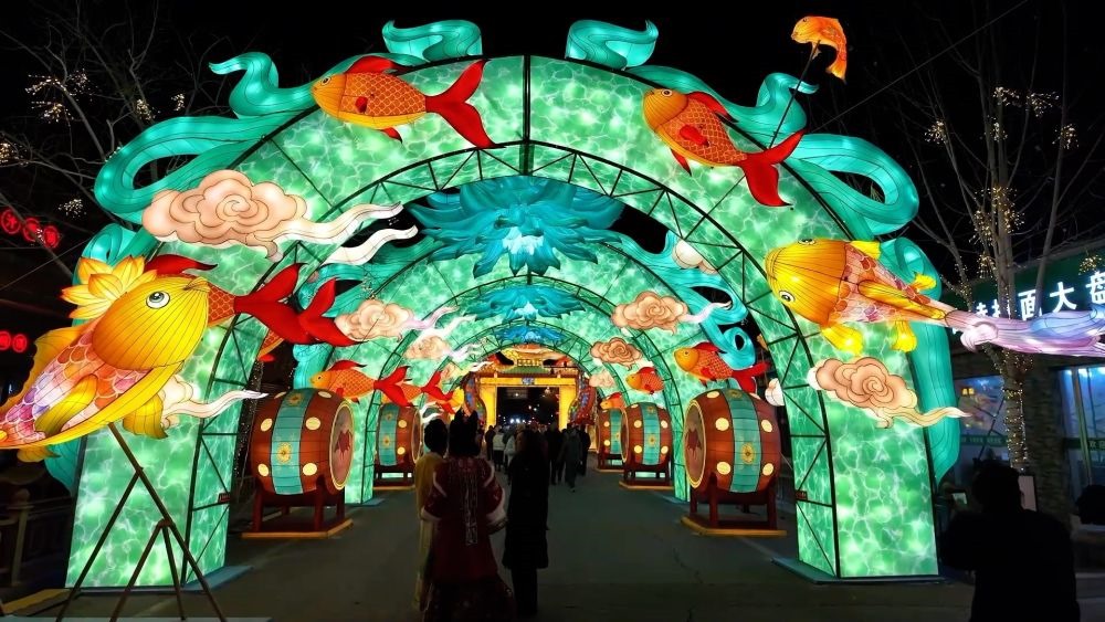 氛圍主題分為兩大篇章,第一個以莫高窟的壁畫和敦煌元素組成的“紋話敦煌”。第二部分由天街燈市組成“十二辰彩”,將敦煌傳統的壁畫用聲光電技術呈現出來。增加游戲互動環(huán)節(jié)、設置NPC等讓游客能夠沉浸式體驗燈會。