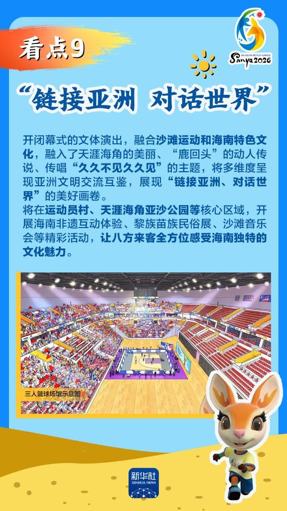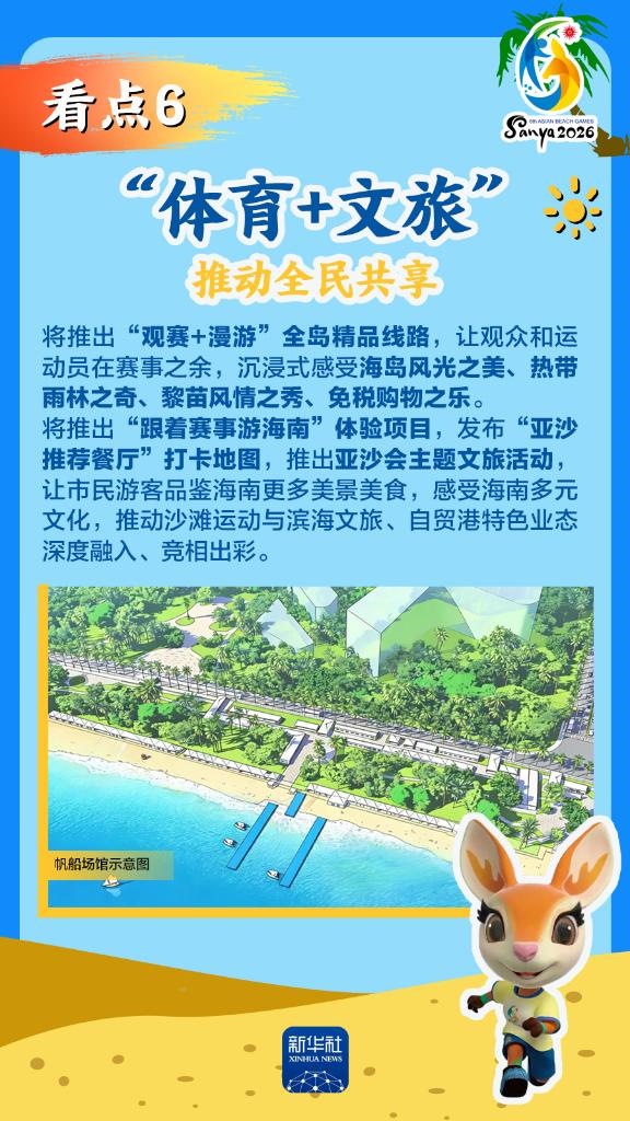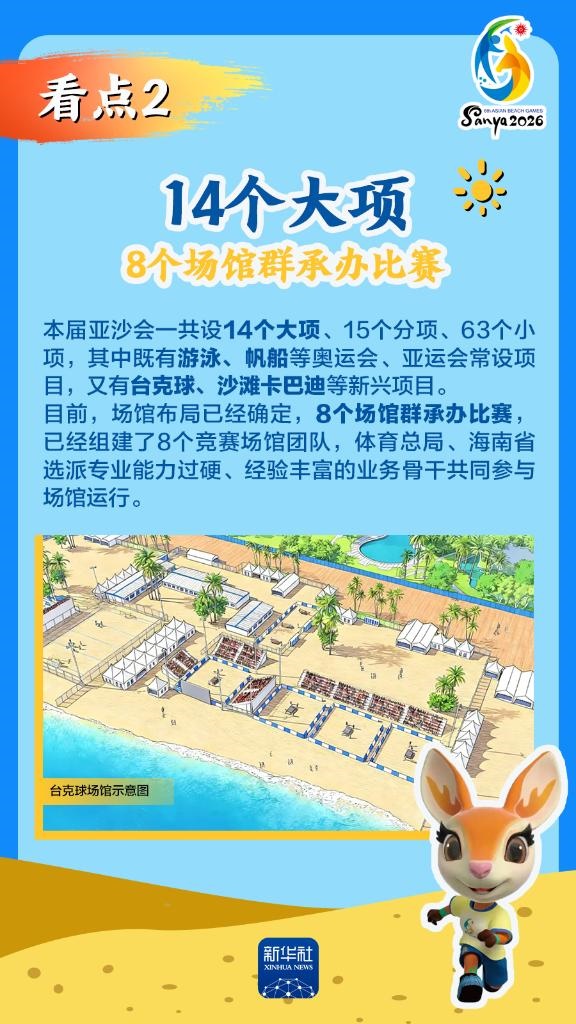 第六屆亞洲沙灘運(yùn)動(dòng)會(huì)(以下簡(jiǎn)稱(chēng)“亞沙會(huì)”)將于2026年4月22日至30日在海南三亞舉行,賽事歷時(shí)9天。作為海南自由貿(mào)易港封關(guān)運(yùn)作后迎來(lái)的首個(gè)國(guó)際大型綜合性體育盛事,亞沙會(huì)都有哪些看點(diǎn)?為何值得期待?國(guó)新辦12日發(fā)布會(huì)做了詳細(xì)介紹,一起來(lái)看。