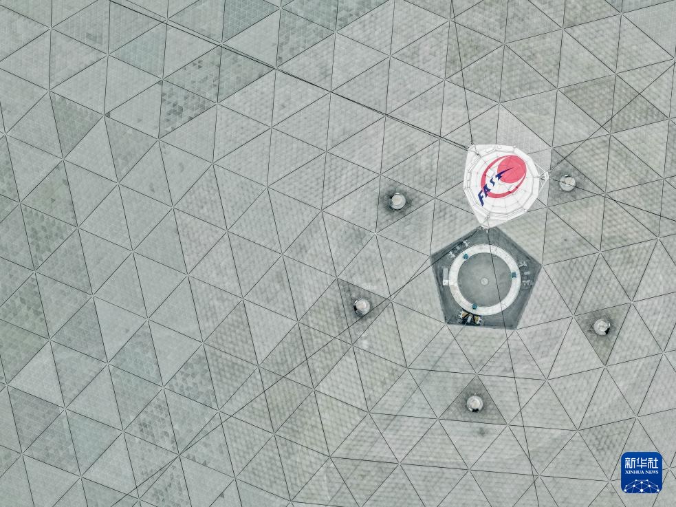 1月16日拍攝的“中國天眼”饋源艙(無人機照片,維護保養(yǎng)期間拍攝)。