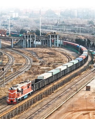 1月1日,一列裝有汽車(chē)配件的火車(chē)從中哈(連云港)物流合作基地發(fā)往哈薩克斯坦。