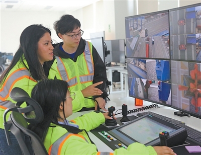 2025年10月7日,在秘魯錢(qián)凱港,中遠(yuǎn)海運(yùn)港口秘魯錢(qián)凱公司中外員工進(jìn)行作業(yè)監(jiān)控。