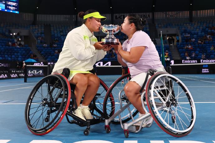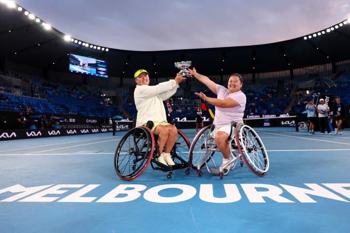 北京時(shí)間1月30日,2026澳網(wǎng)輪椅網(wǎng)球女雙決賽,頭號(hào)種子、中國組合王紫瑩/李曉輝以6-4、6-3擊敗2號(hào)種子朱珍珍/上地結(jié)衣,實(shí)現(xiàn)衛(wèi)冕。中國選手朱珍珍和搭檔上地結(jié)衣收獲亞軍。