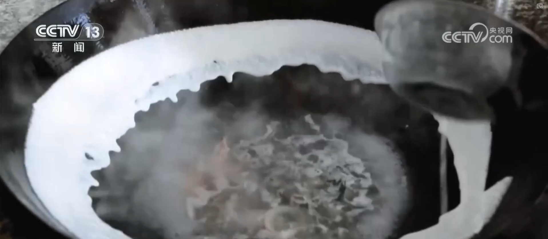 鍋邊的制作并不復(fù)雜,以高湯為底,加入蝦米、紫菜、干貝、香菇、蟶干、魚干等食材共同熬煮。之所以叫“鍋邊”,是因?yàn)橹谱鲿r(shí),要把大米磨成的米漿沿著燒熱的鍋的邊緣順時(shí)針澆上一圈。而作為鍋邊的“靈魂”,米漿的制作可有大講究。