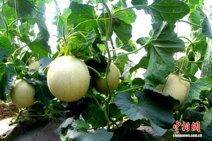 近年來(lái),民勤縣立足本地光熱、土壤等資源稟賦,因地制宜發(fā)展特色農(nóng)業(yè),對(duì)蜜瓜栽培模式開(kāi)展集成創(chuàng)新。當(dāng)?shù)匾劳腥摷苋展鉁厥遥囼?yàn)推廣連體拱棚立架式栽培技術(shù),配套膜下滴灌、水肥一體化等現(xiàn)代農(nóng)業(yè)技術(shù),適度規(guī)模培育“吊種”玉菇、白金瑞雪、金色年華等蜜瓜新品種;科學(xué)規(guī)劃布局蜜瓜重點(diǎn)種植基地,逐步打造玉菇甜瓜生態(tài)種植產(chǎn)業(yè)帶,推動(dòng)特色農(nóng)業(yè)集群集聚發(fā)展,為瓜農(nóng)增收致富解鎖新路徑。