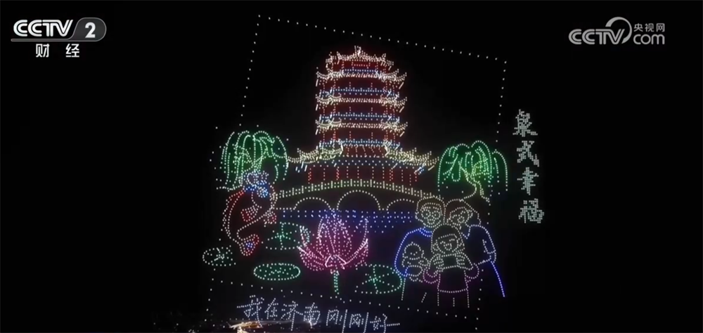 在江蘇常州恐龍園,巨型AI恐龍花燈與游客嘮嗑聊天,配合園區(qū)內民俗活動,為游客帶來人與科技共舞的創(chuàng)新式沉浸體驗;在山東濟南,一萬架無人機同時起飛點亮夜空,為觀眾呈現了一場科技與文化交織的光影盛宴。