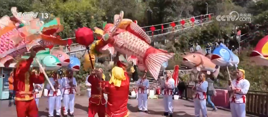 記者身后的九鯉湖景區(qū),湖光山色、層巒疊翠,展現(xiàn)出南方山岳特有的靈秀。景區(qū)里最熱門的打卡點之一,叫做“一線天”。這里最窄處不到30厘米,一次只能容一人貼壁通過,游客需要側(cè)身慢慢穿行,在狹窄石縫間體驗攀登的樂趣。記者身旁正在巡游的就是當(dāng)?shù)氐姆沁z——店下魚燈。大家看,一盞盞彩繪魚燈隨著隊伍前進上下擺動,像魚兒在水里游,特別靈動。在過去,漁民會用魚燈祈愿出海平安、豐衣足食。過年的時候看魚燈,也寓意“年年有余、風(fēng)調(diào)雨順”。