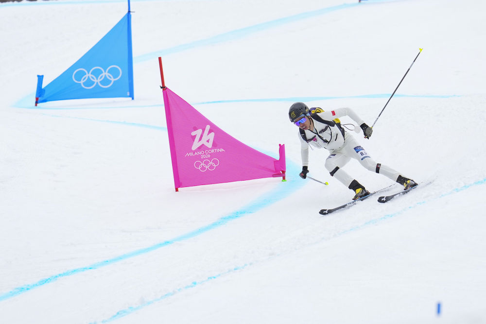 2026年2月21日,布魯爾在米蘭-科爾蒂納冬奧會滑雪登山混合接力比賽中。新華社記者 胡虎虎 攝
