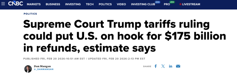 更值得注意的是,從近兩天動(dòng)作看,白宮的核心優(yōu)先級并不是“盡快把錢退回去”,而是“盡快把關(guān)稅工具續(xù)上”。白宮一方面通過行政令,終止依據(jù)IEEPA加征的額外從價(jià)稅,另一方面又迅速依《1974年貿(mào)易法》第一百二十二條祭出為期150天的臨時(shí)全球15%關(guān)稅,同時(shí)加大利用301條甚至232條等傳統(tǒng)工具,繼續(xù)搭建新的關(guān)稅墻。這套動(dòng)作釋放的信號(hào)十分明確:關(guān)稅杠桿要繼續(xù)用,至于已經(jīng)收來的稅款怎么退、退多少,姑且交給訴訟和程序去磨。換句話說,即便法院逼著政府退錢,白宮也在試圖通過新一輪、基于其他法律授權(quán)的關(guān)稅,把現(xiàn)金流盡可能補(bǔ)回來。