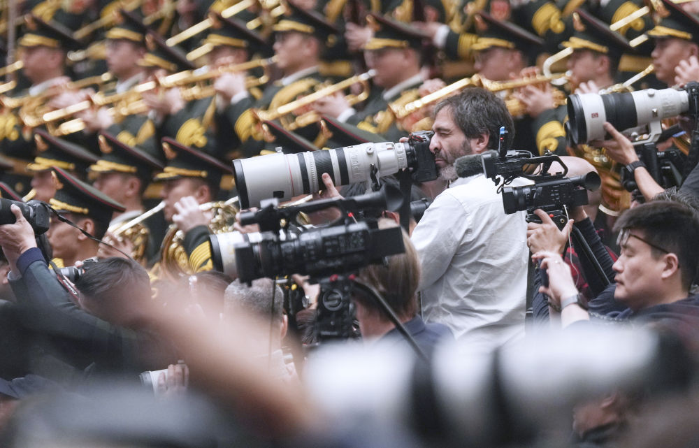 2026年3月5日上午,第十四屆全國人民代表大會第四次會議在北京人民大會堂開幕。這是記者在會場采訪。新華社記者 王曦 攝