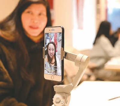 4月19日,主播在甘肅省女大學(xué)生就業(yè)專場招聘活動(dòng)現(xiàn)場進(jìn)行直播帶崗。新華社記者 范培珅攝