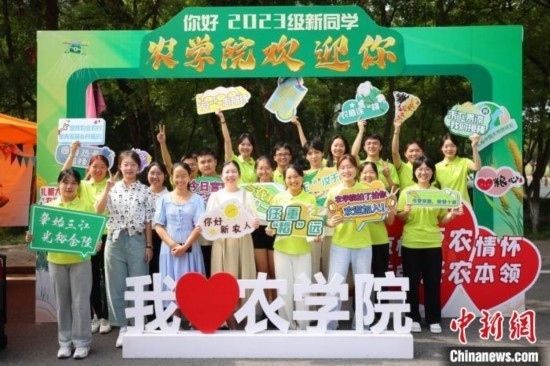 南京農(nóng)業(yè)大學(xué)衛(wèi)崗校區(qū)內(nèi),新生拍照留影。 泱波 攝