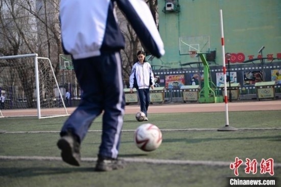 圖為沈陽市第一三四中學(xué)濱河路分校學(xué)生在上體育課。中新網(wǎng)記者 于海洋 攝