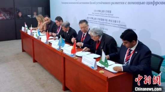 活動(dòng)現(xiàn)場(chǎng),西安交通大學(xué)、哈薩克斯坦國(guó)立大學(xué)、伊朗科技大學(xué)、塔什干信息技術(shù)大學(xué)、吉爾吉斯國(guó)際大學(xué)、巴基斯坦國(guó)立科技大學(xué)、塔吉克斯坦國(guó)立大學(xué)共同簽署“絲綢之路大學(xué)聯(lián)盟”內(nèi)上海合作組織成員國(guó)《高等教育合作協(xié)議》。在該合作協(xié)議框架下,各方達(dá)成首個(gè)學(xué)分互認(rèn)項(xiàng)目的共識(shí),即共同建設(shè)絲綢之路大學(xué)聯(lián)盟“可持續(xù)發(fā)展目標(biāo)實(shí)現(xiàn)路徑在線(xiàn)課程”。