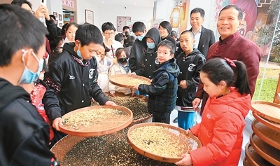 在福州教育學(xué)院附屬第二小學(xué),臺灣青少年近距離領(lǐng)略中華傳統(tǒng)文化的獨特魅力。書法藝術(shù)的雅致、篆刻技藝的精妙、掐絲琺瑯的華麗、金箔畫書簽的韻味……每一項體驗都給臺灣青少年留下深刻印象。福州茉莉花茶傳統(tǒng)窨制工藝傳承人張子健現(xiàn)場展示了茉莉花茶制作技藝,不少臺灣青少年興趣盎然地跟著學(xué)習(xí)。兩岸青少年還攜手種下“連心樹”,期盼友誼之樹茁壯成長,未來見證彼此情誼的延續(xù)與發(fā)展。