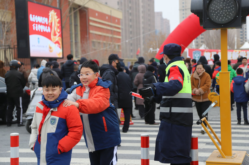當(dāng)日清晨7時(shí)許,校園門前已秩序井然。在赤峰市公安交管部門統(tǒng)一指揮調(diào)度下,專業(yè)護(hù)學(xué)安保力量提前到崗,在校園出入口、人行橫道及車流集中路段開展值守。執(zhí)勤人員與交警密切配合,規(guī)范開展交通疏導(dǎo),引導(dǎo)接送車輛即停即走,及時(shí)勸導(dǎo)交通違法行為,護(hù)送學(xué)生安全通過道路,有效維護(hù)上下學(xué)高峰時(shí)段交通秩序,成為校園周邊一道亮眼的“平安風(fēng)景線”。