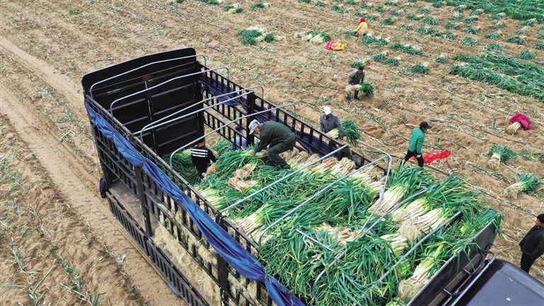 大蔥裝車。