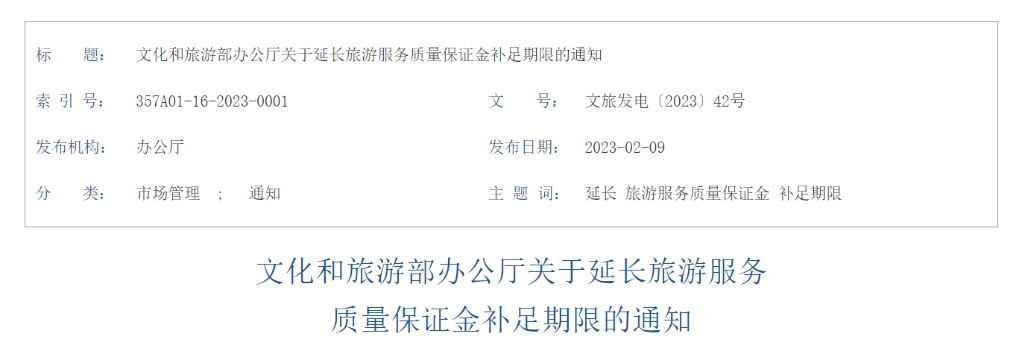 文化和旅游部辦公廳日前發(fā)布通知延長(zhǎng)旅游服務(wù)質(zhì)量保證金補(bǔ)足期限。通知提出,按照《文化和旅游部辦公廳關(guān)于進(jìn)一步調(diào)整暫退旅游服務(wù)質(zhì)量保證金相關(guān)政策的通知》(文旅發(fā)電〔2022〕61號(hào))要求享受暫退或暫緩交納保證金政策的旅行社,補(bǔ)足保證金期限延至2024年3月31日。