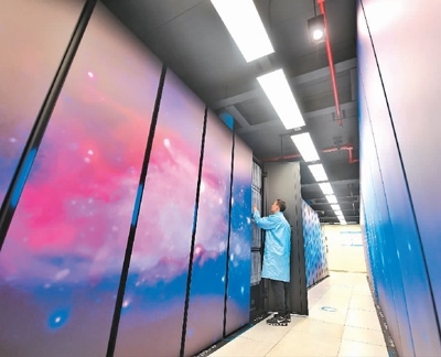 2023年2月14日,四川省成都市,國家超級計(jì)算成都中心的科研人員在巡檢機(jī)房設(shè)備。新華社記者 劉 坤攝