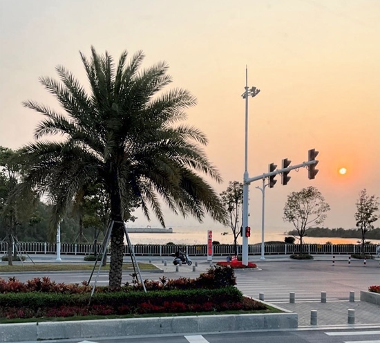 人民網(wǎng)東莞2月22日電 (記者趙雯 薛艷艷)濱海驛站坐落于廣東省東莞市濱海灣新區(qū),是東莞濱海長廊首個(gè)建成的重要節(jié)點(diǎn),緊靠海岸線,南臨前海,隔海眺望南沙自貿(mào)區(qū)、中山翠亨新區(qū)。立于驛臺(tái)前,海風(fēng)習(xí)習(xí)拂來,海天一線,日落降臨,浮光躍金。濱海驛站周邊建有廣場平臺(tái)、自行車道、沿海步道和園林綠化。濱海灣新區(qū)未來規(guī)劃建設(shè)一條長約40余公里的濱海長廊,以“運(yùn)動(dòng)廊+人文鏈+活力岸”為建設(shè)目標(biāo),打造生態(tài)海堤,不僅為游客提供親水體驗(yàn),同時(shí)也為鳥類、兩棲類動(dòng)物提供生境及遷徙通廊。