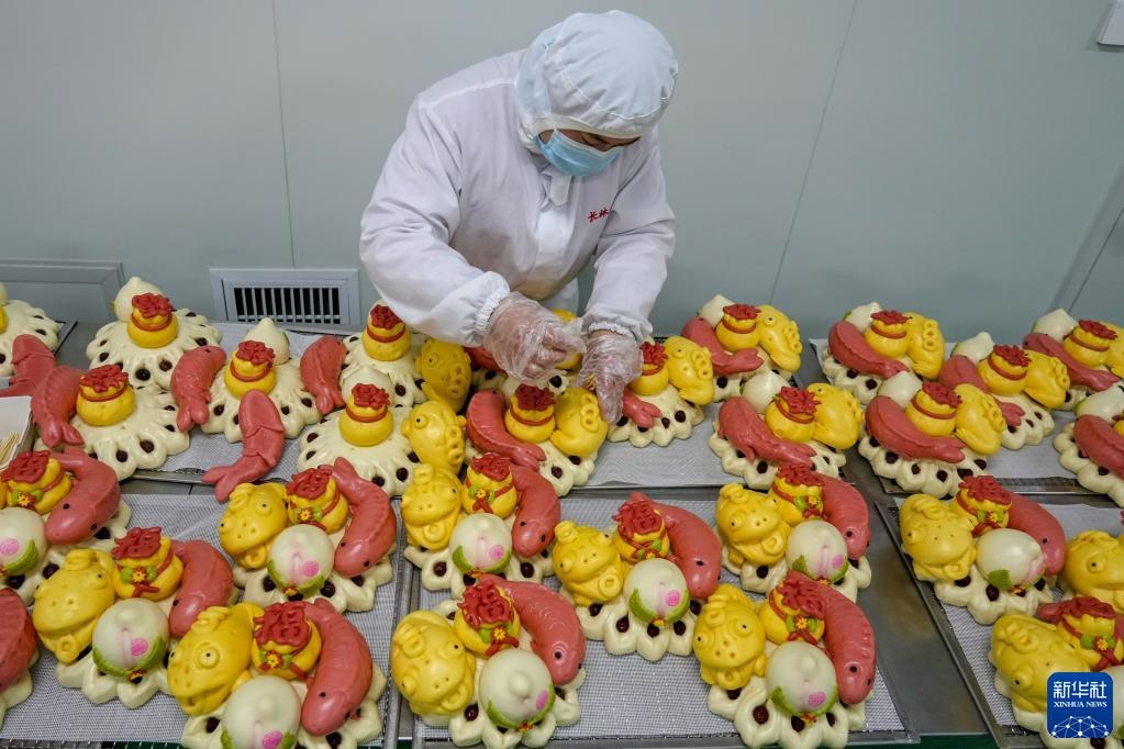 2月17日,威海長(zhǎng)林生態(tài)農(nóng)業(yè)有限公司員工在十萬(wàn)級(jí)凈化生產(chǎn)車(chē)間內(nèi)制作花餑餑。新華社記者 朱崢 攝