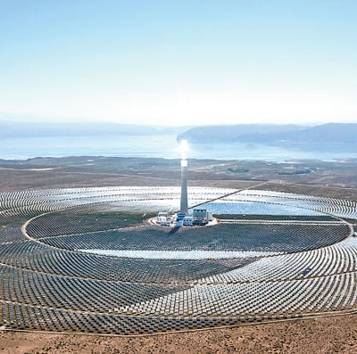 青海海南藏族自治州,太陽(yáng)能生態(tài)發(fā)電園區(qū)內(nèi)的50兆瓦熔鹽塔式光熱電站。本報(bào)記者 伊 霄攝