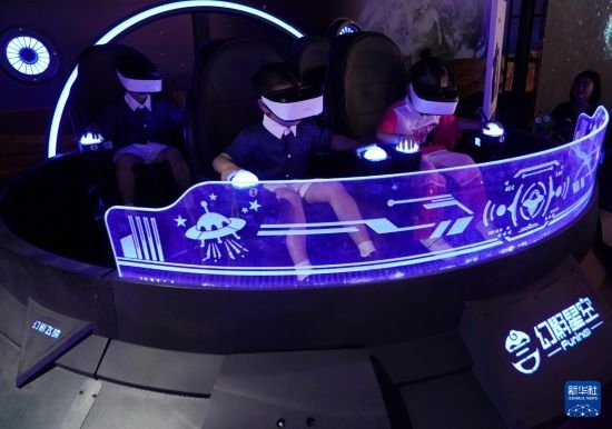 4月27日,小朋友在北京科幻嘉年華現場體驗VR游戲。