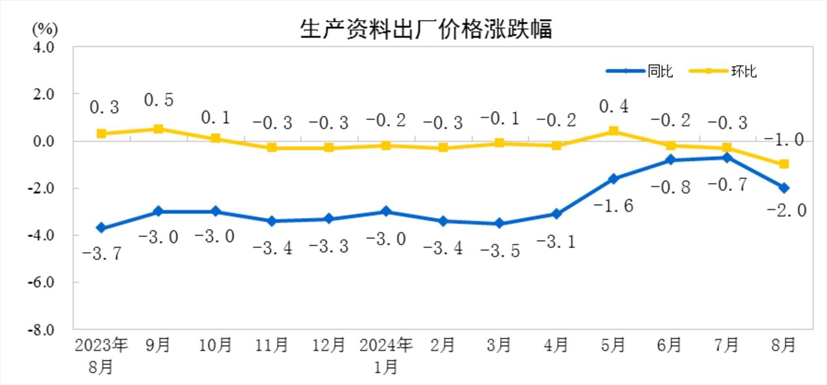 2024年8月工業(yè)生產(chǎn)者價格主要數(shù)據(jù)