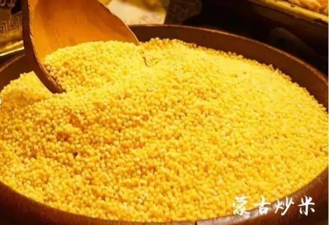 炒米是用糜子經(jīng)過(guò)蒸、炒、碾等多道工序加工而成的,加入酸奶和白糖等輔料進(jìn)行攪拌,既解餓又解渴。炒米清香爽口,是別具風(fēng)味的傳統(tǒng)食品,也是當(dāng)?shù)啬撩袢粘I钪斜夭豢缮俚氖称贰?/p>
