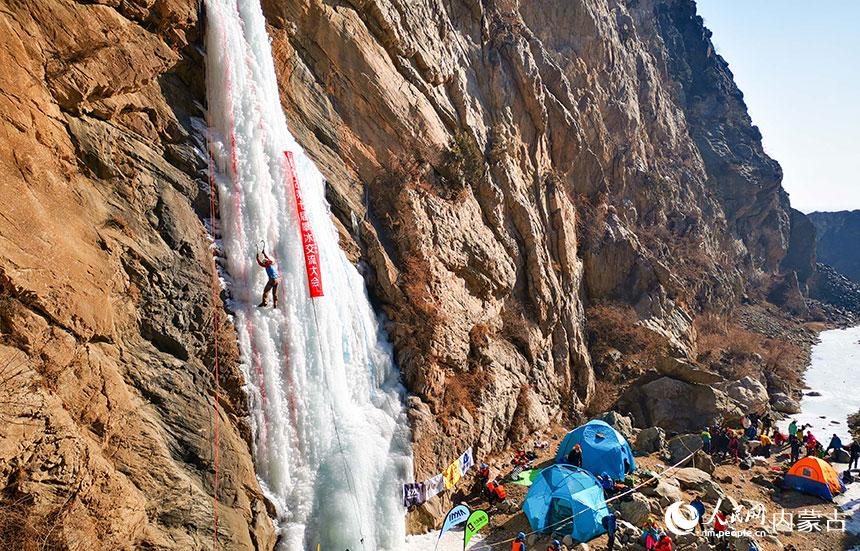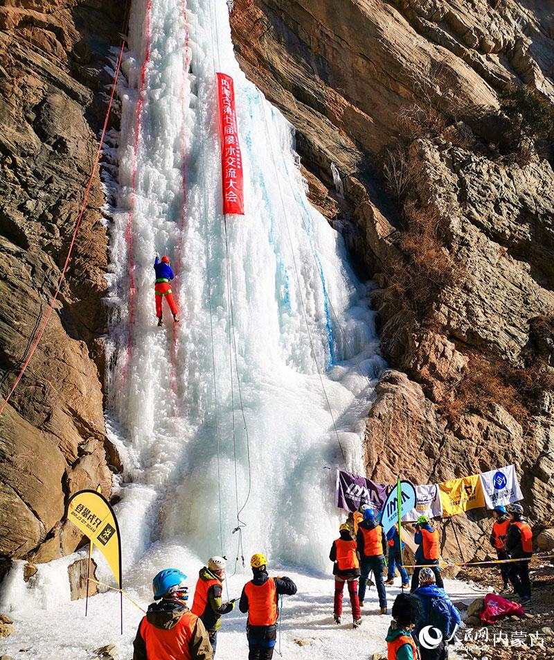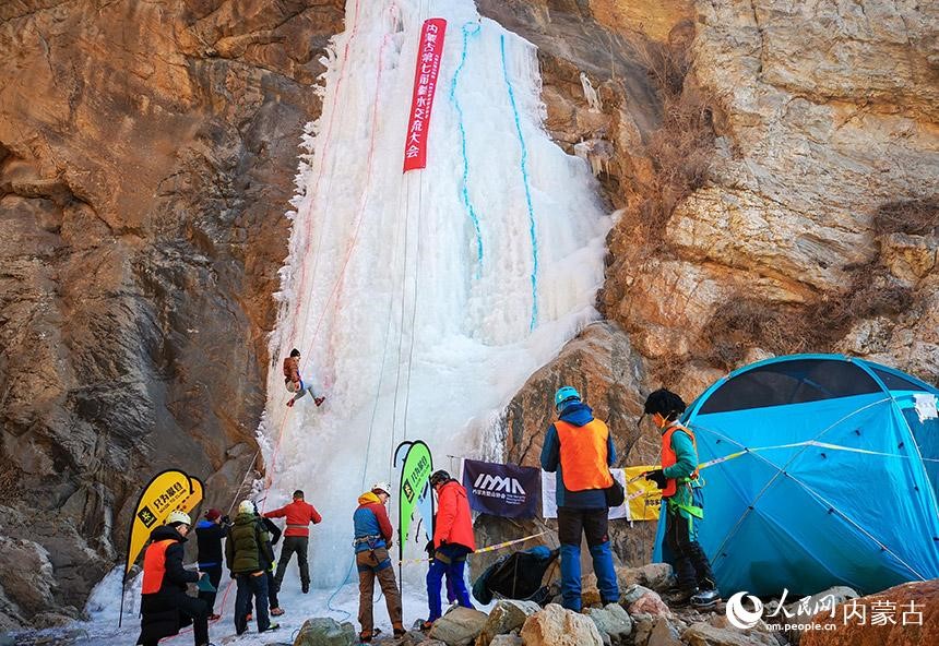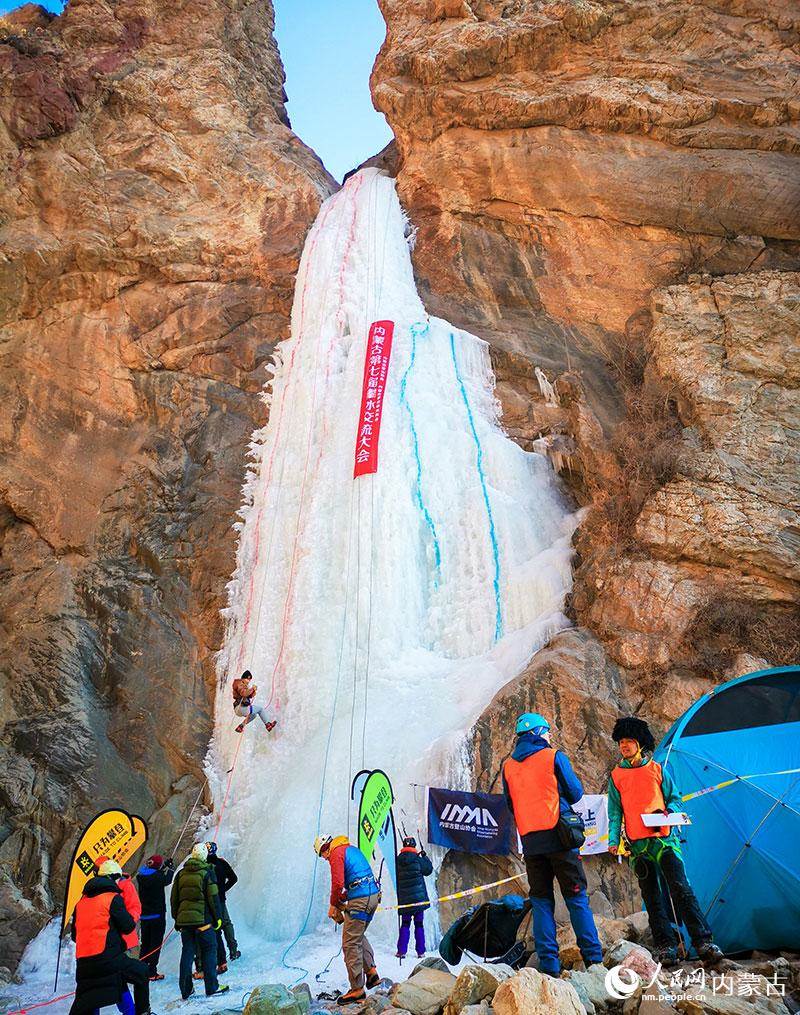 1月16日,由內蒙古登山協(xié)會、內蒙古攀巖攀冰協(xié)會聯(lián)合舉辦的內蒙古第七屆攀冰交流大會在包頭市土默特右旗舉行,來自內蒙古各地的攀冰愛好者和戶外運動愛好者在晶瑩剔透的冰瀑上挑戰(zhàn)自我,感受極限運動帶來的樂趣。(丁根厚)