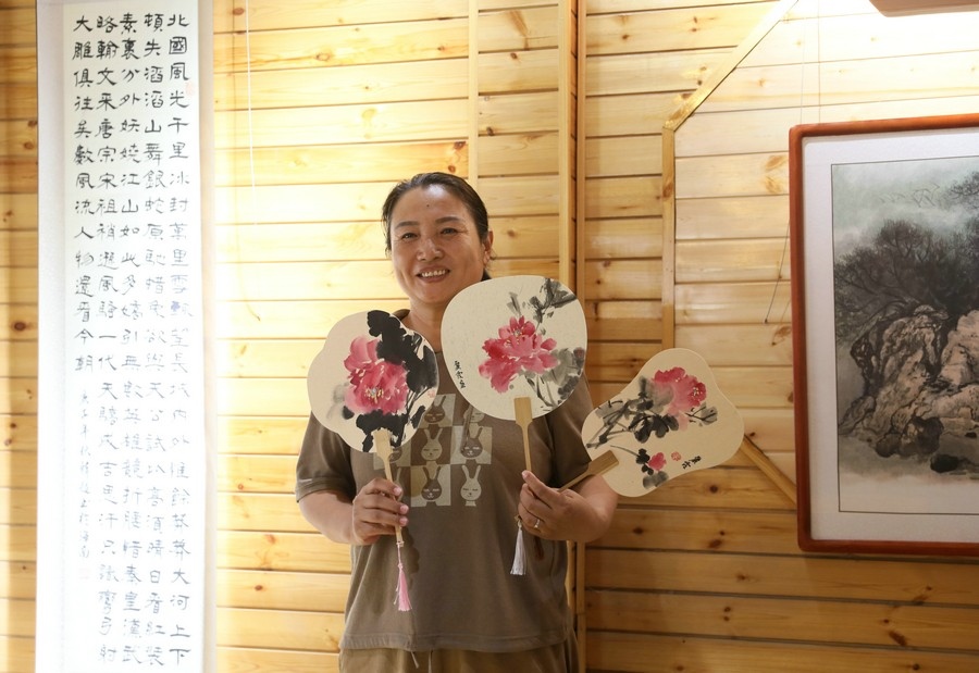 游客在魯婷黃河石彩繪工作室參觀 記者 張楊攝影