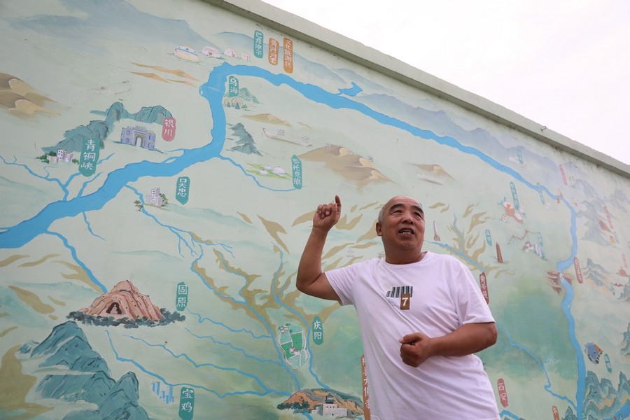 劉占林講述黃河由此改道西行 記者 張偉攝影